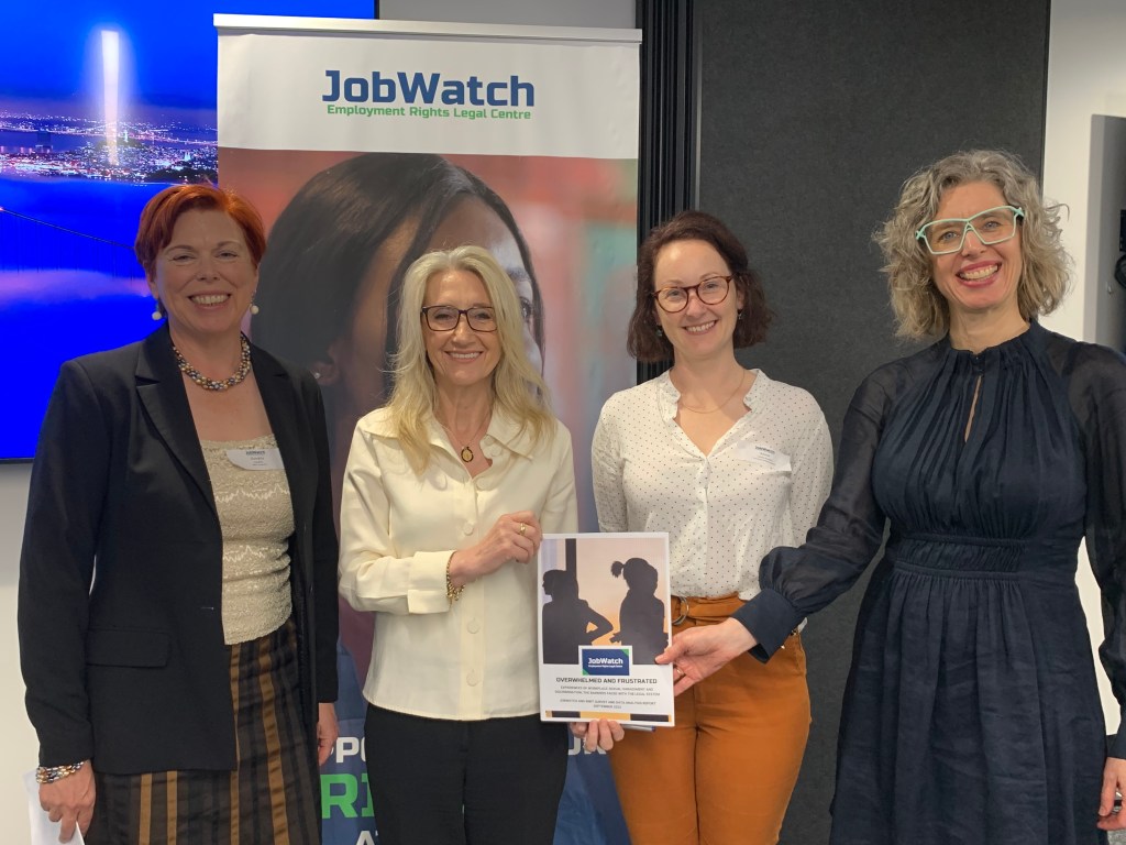 (L-R) Professor Georgina Heydon (RMIT); Zana Bytheway (JobWatch); Dr Rachel Loney-Howes (University of Wollongong); Nina Taylor (MP)
